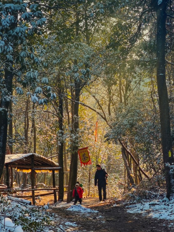 防滑与装备:冬季霜冻、落叶、偶有暗冰,路面异常湿滑。必须穿戴专业登山鞋,并强烈建议使用双登山杖。普通运动鞋极易滑倒。