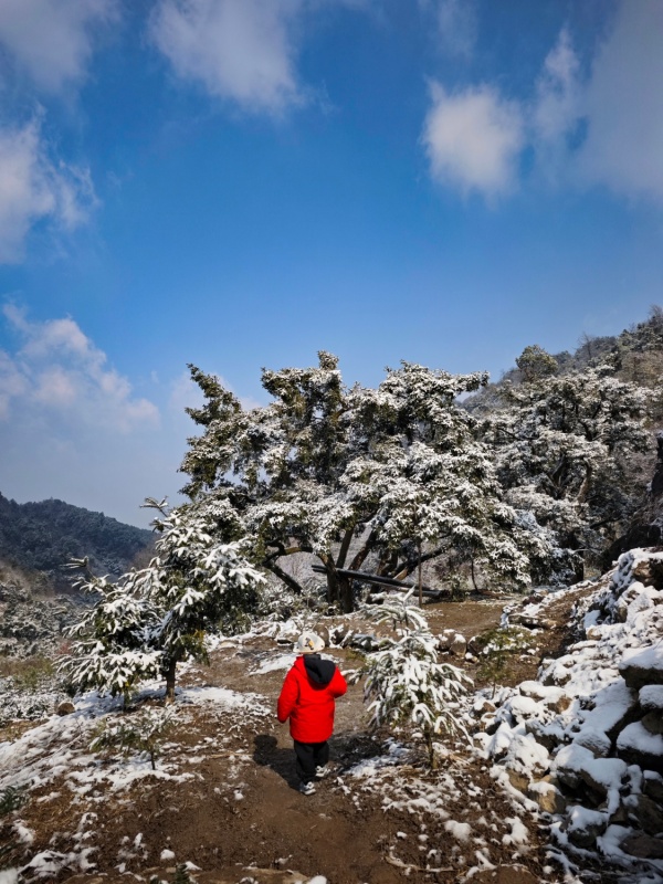 走马岗是浙江地区高分徒步线路是 ,该线路以成片的千年香榧古树群为核心景观,冬季树干遒劲、枝桠苍古的形态尤为突出,配合山脊线风光,在社交媒体上形成了独特的视觉吸引力。