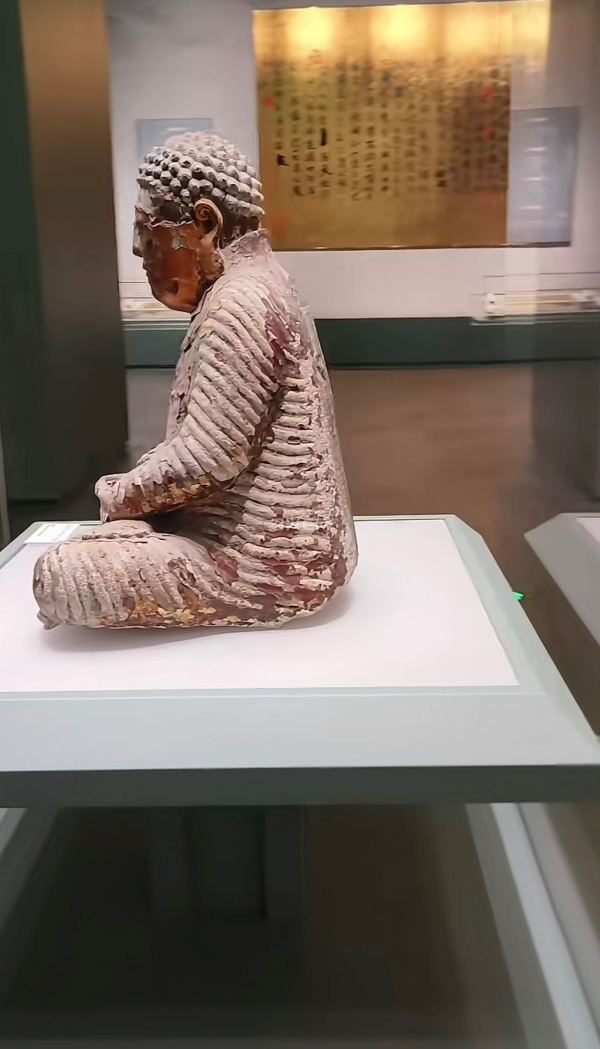 绍兴博物馆新馆开放,特意去看了镇馆之宝———— 南朝齐永明六年的维卫佛像。据历史记载,佛像雕凿于南齐永明六年(公元488年),通高59厘米,青石材质,外施贴金( 现存面部贴金保存较好,其余部分斑驳脱落)。维卫佛像是1500年前的古物,历经战乱沉塘、日军抢夺都没被毁,背后还有鲁迅先生收藏过它的拓片,简直是历史小说里的传奇!