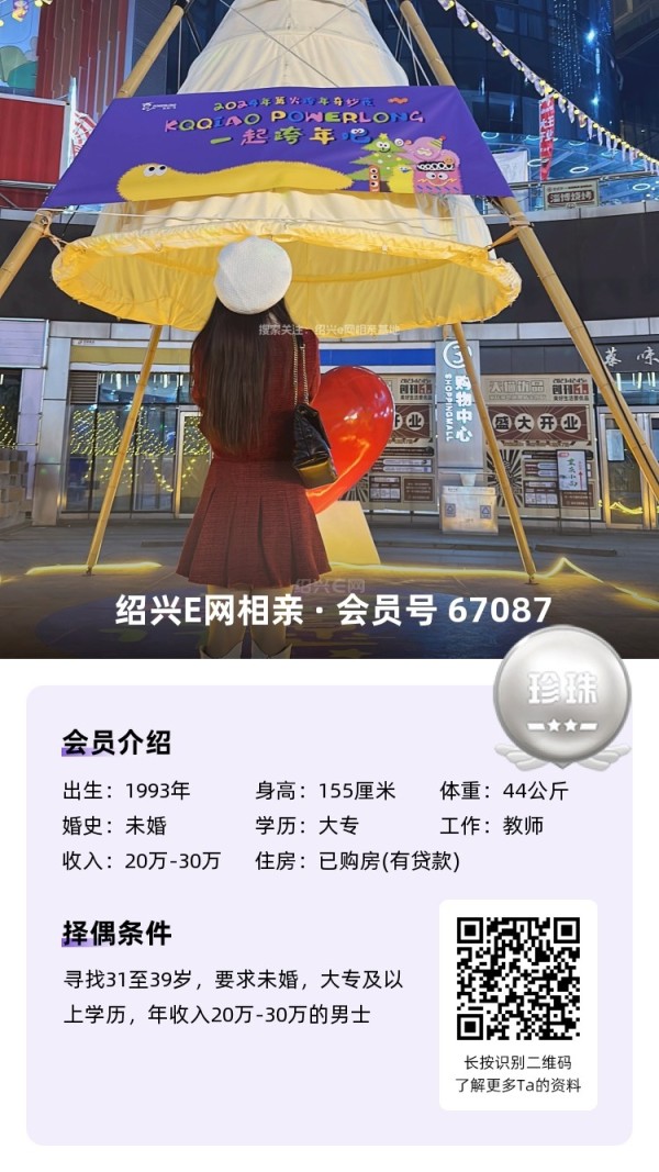 她想找39岁以下,大专及以上学历的未婚男生,想认识她可以私聊楚楚姐+67087