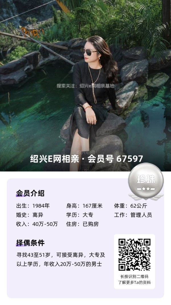 从事纺织行业,年收入50万以上名下房车俱备,离异有娃,无需担心孩子的经济问题,她自己都能搞定