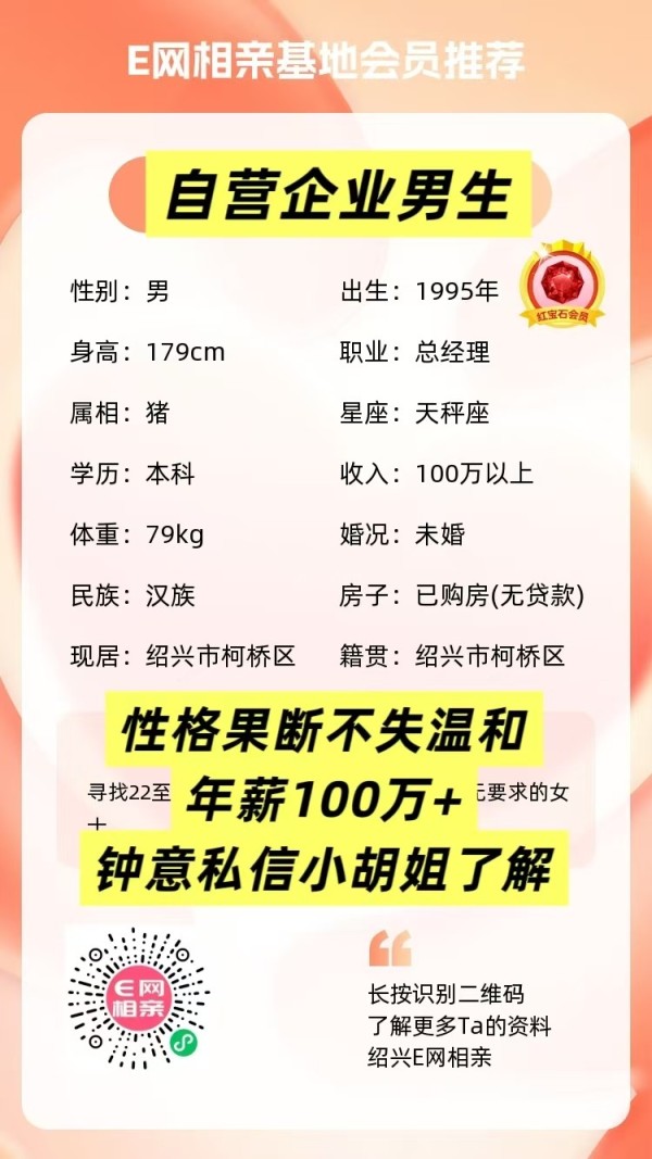 生活简单自律,没有不良嗜好,人品佳,三观正。