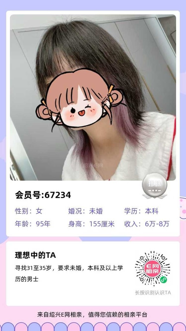 她想找33岁以下,本科及以上学历的未婚男生,想认识她可以私聊楚楚姐介绍+67498