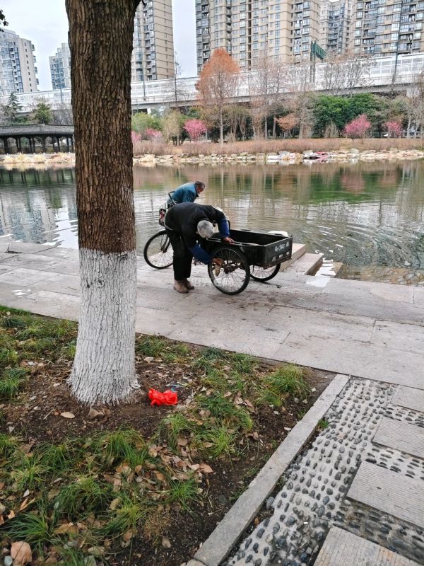 在在河埠头看到一个老者在仔细的擦拭着自己心爱的三轮车。要过年了。不仅家里要搞大扫除,还要把自己的随身物品啊什么都要清理的干干净净。过新年。