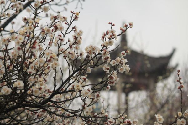 午后风暖,游客很少,便从煮酒亭上山,红梅正盛花期,忙煞一群群蜜蜂,一路闻馨香,一路听嗡嗡。青梅零星开放,大多还是花骨朵,映衬着蓝天,倒像满天的银光小星,却散发缕缕暗香,在暖风中摇曳……