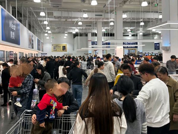 年底山姆超市生意真好,小年将至,山姆会员店客流激增,市民集中采购年货,卖场人气火爆。