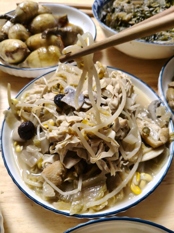 我们这边八宝菜中必须有芥菜,黄豆芽两种素菜。