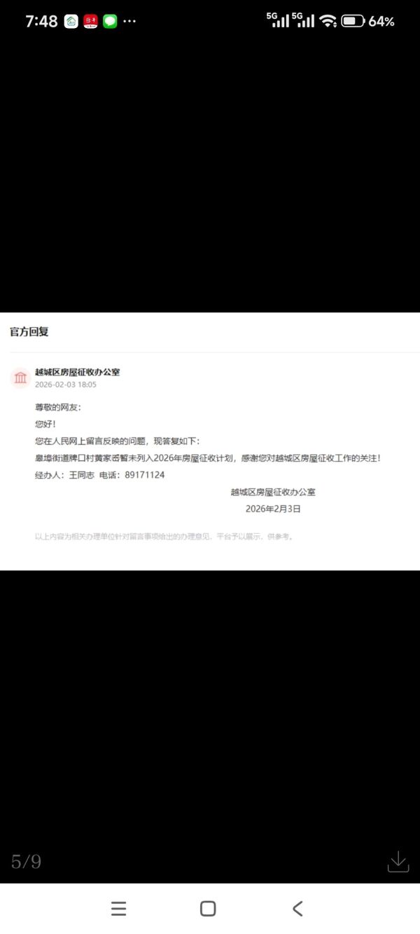 问:请问领导绍兴越城区东湖街道五联村是否纳入2026年拆迁计划?