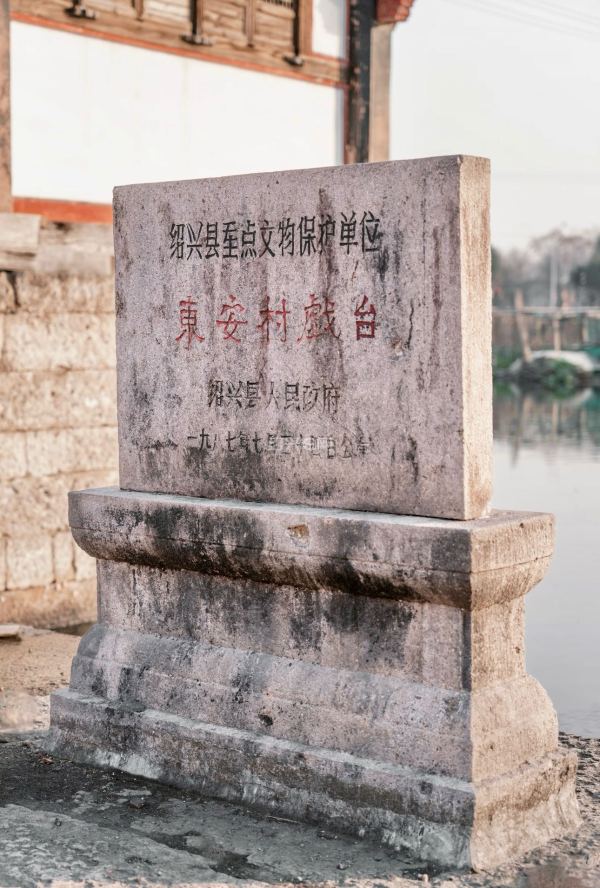 安城戏台(又称东安戏台、安城河台、庙台)位于绍兴市滨海新区马山街道东安村,是绍兴水乡典型的水上戏台,也是绍兴地区保存完整的清代神庙戏台之一,承载着数百年的社戏文化记忆,六龄童最后一场演出就在于此。
