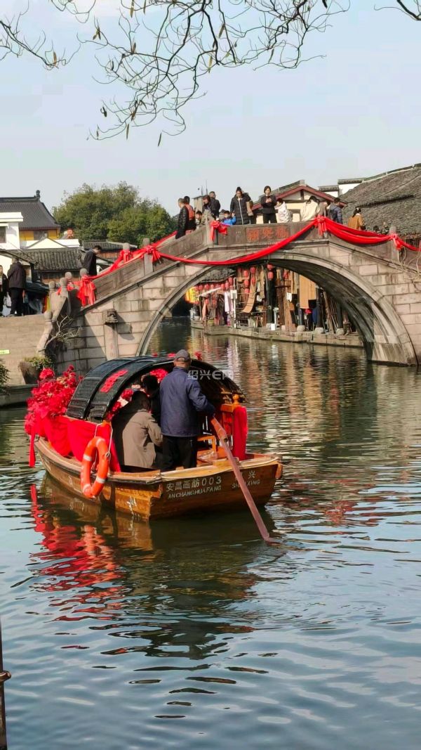 安昌古镇的桥千姿百态,大大小小,纵横交错,时而横卧于水面,时而串接于弄堂小巷。桥上有披红挂彩,桥下有乌篷穿行其间。游人漫步其间,无不驻足留影,赞曰:此处风景独好