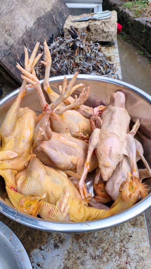 上海的朋友昨夜电话告诉我要来紹兴看望丈母娘,让我今天杀几只鸡鸭好送送丈母娘,顺便也带几只回上海,一早就忙开了,几个老客户也开车自己来抓鸡鸭了,忙死了,上海朋友的也才刚给完工,先拍下给他看下,满意吧!