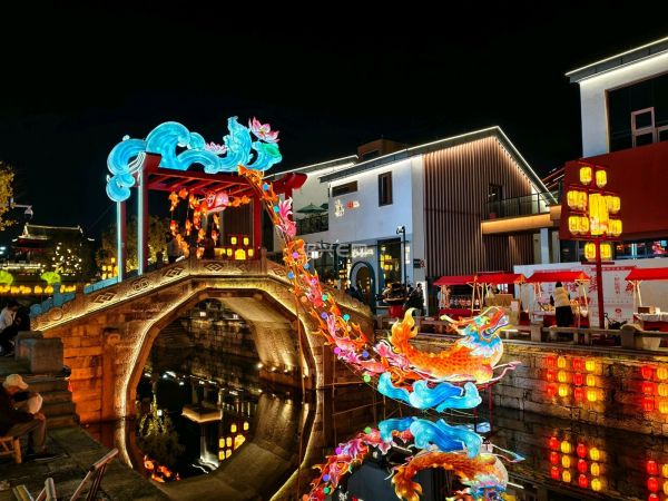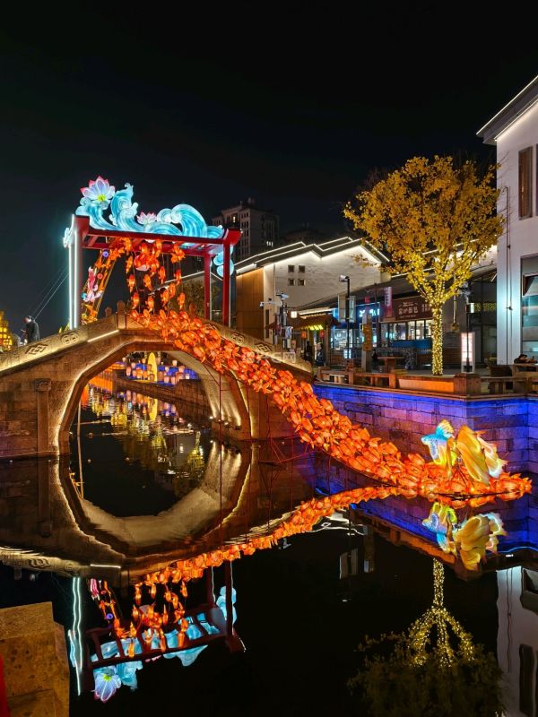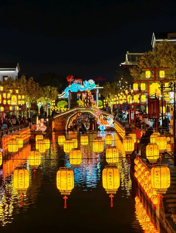 喜庆的迎恩门张灯结彩迎大年,漂亮的五彩灯笼映照整个水街