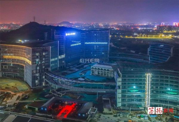 “浙大二院柯桥院区”的Logo在夜色中亮起