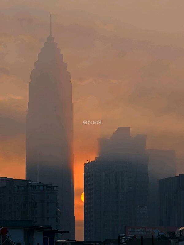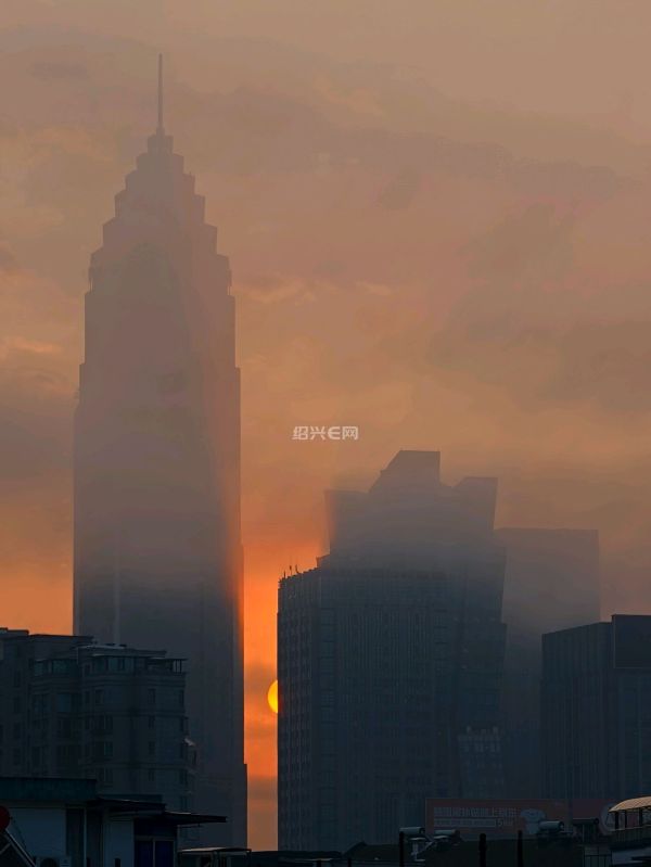 今天早晨雾大,恰巧碰到世茂标志楼和变形金刚楼的缝隙中看见雾中日出