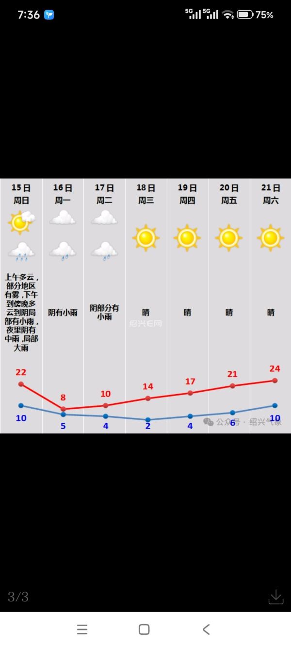 绍兴市气象台2月16日6:00发布的短期天气预报: