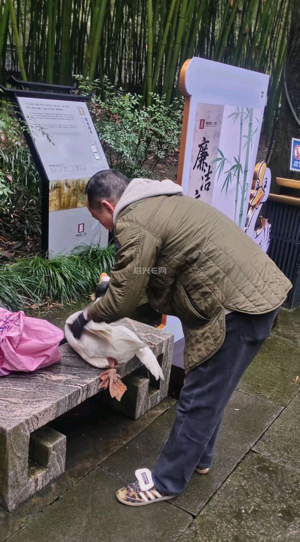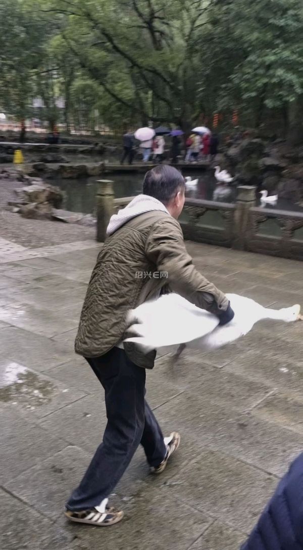 工作人员说上午还有个本地人来送鹅放鹅