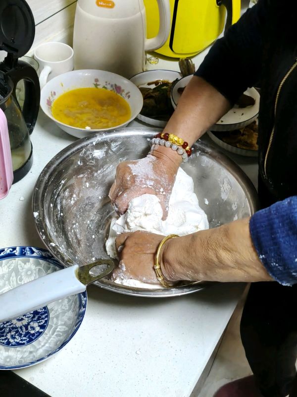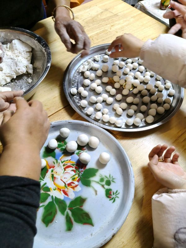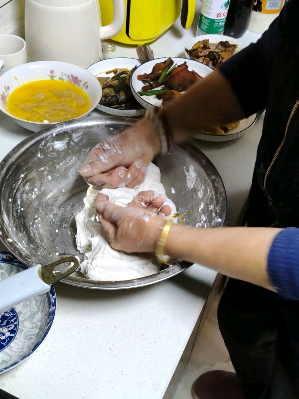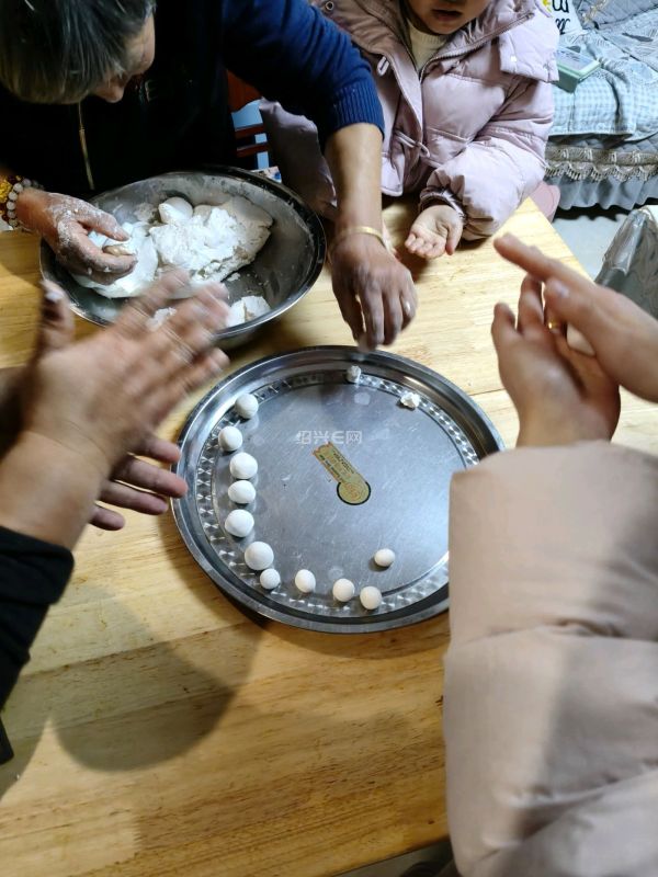 除夕夜搓呑吞,今天搓好明天早上请菩萨要用,请完菩萨,这个吞吞又是一家人的早餐,寓意团团圆圆,幸福美满!