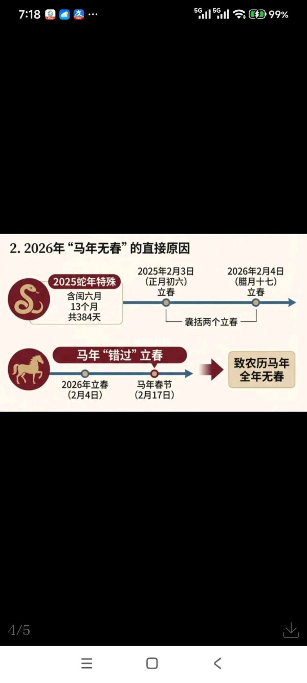 2026年马年无春,是因为2025年的蛇年含闰六月,共13个月,包含了两个立春,致2026年马年全年无春。