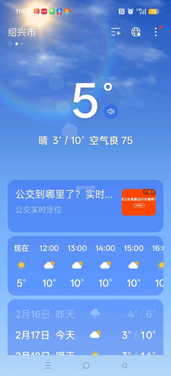 绍兴今天多云转晴,虽然气温还有点低,早上10℃不到,但后续几天温度一直会上升,春天巳经近在眼前了,你看你看,地里的蚕豆花都巳经在开了哦!