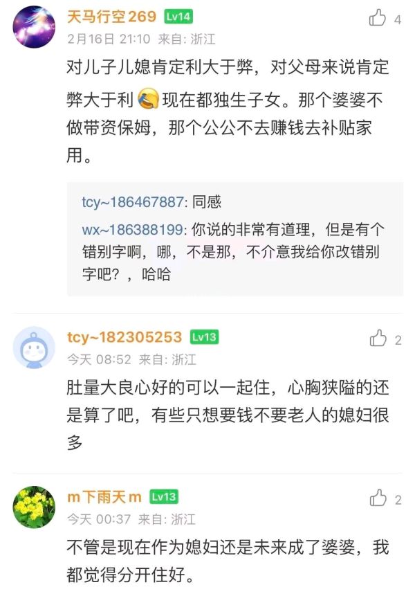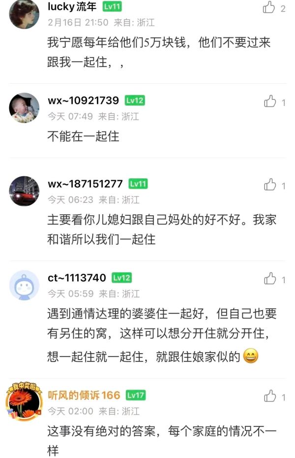 回 第37楼(tl6573144)的帖子 tl6573144:我觉得还是同住好,尤其是有了小孩以后,可以多个人搭把手。有婆婆在,烧饭,洗衣,搞卫生,带孩子她全做了,做媳妇的可以享福 (2026-02-19 07:08)