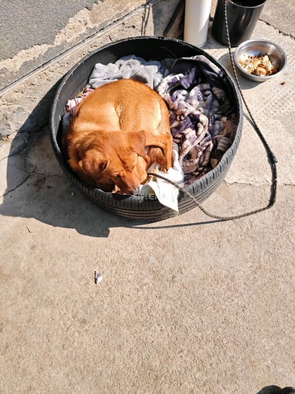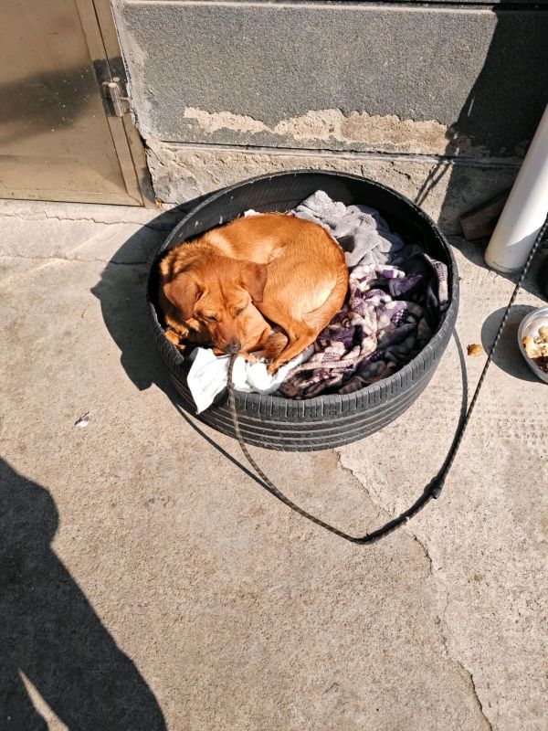 正月初二在暖阳之下。看见一只狗狗在打盹。旁边盘子中放的肉。现在的宠物条件真是不一般呐。要是再过去过去人也没有吃的这么好。