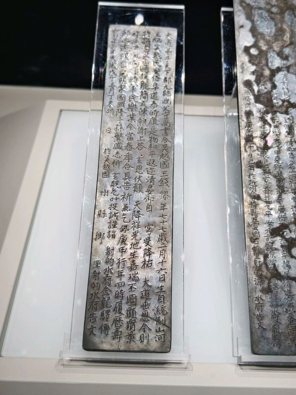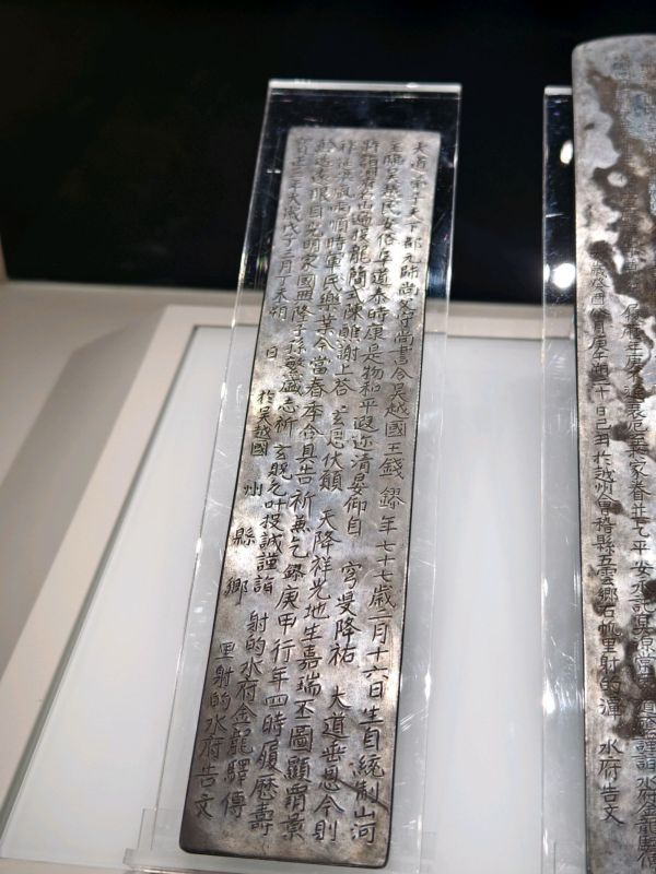 内容从古代到近代都有,比较有意思的是最近不是电视剧太平年比较火嘛,还有吴越国的内容,下面图片有吴越国王的银简。写的还真的是天下兵马都元帅。