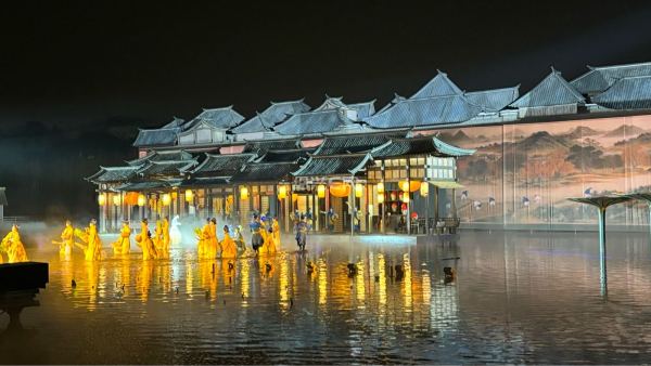 陆游故里晚上的寻迹绍兴水上演出还挺好看的.手机拍不出现场的美.