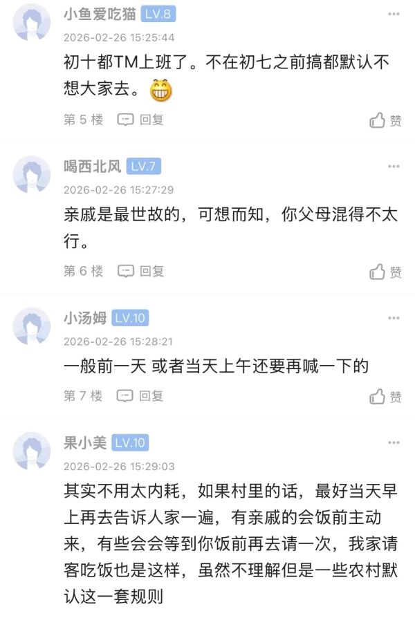 现在都是碍于面子才去的,初十都开工了,特地去吃个饭嫌麻烦了