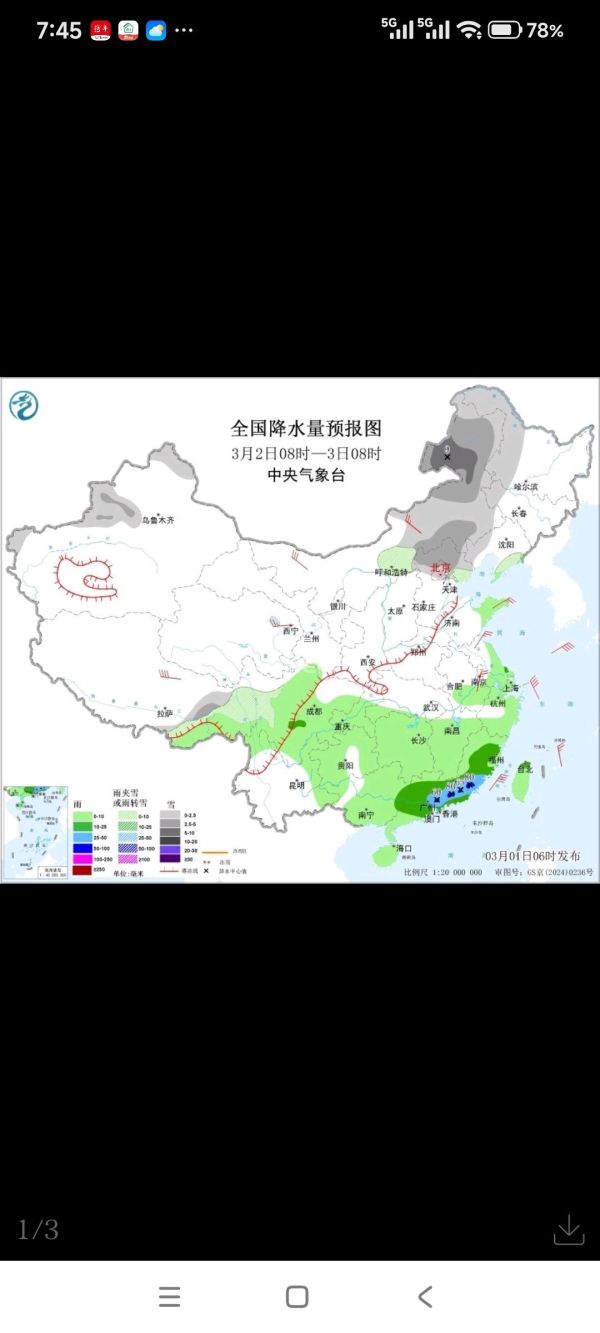 预计,3月2日08时至3日08时,新疆东部、西藏中西部、青海北部、内蒙古大部、江苏东部等地将有5~6级、阵风7~8级的大风;黄海中部和南部海域、东海大部海域、台湾海峡、台湾以东洋面、南海东北部偏北海域将有7~8级、阵风9级的大风,其中黄海东南部海域、东海北部海域风力可达9~10级、阵风11级。