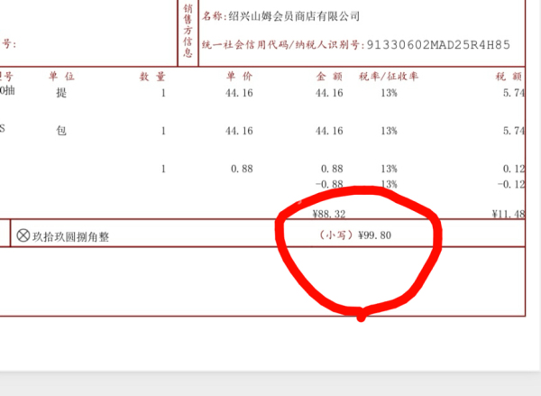 昨天2张绍兴山姆的发票抽了各30元