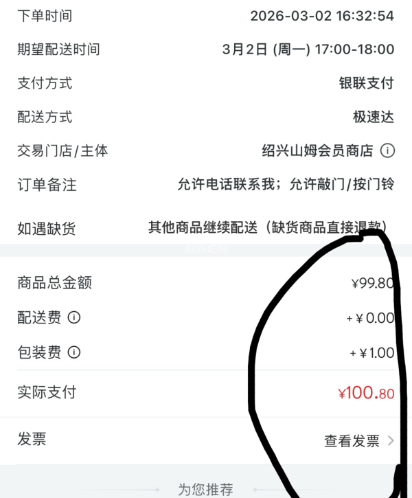 原来的全城配(现在改定时达)开的发票也是绍兴山姆,全国配是上海发货开上海发票,全球购无法开 ..(2026-03-03 16:13)