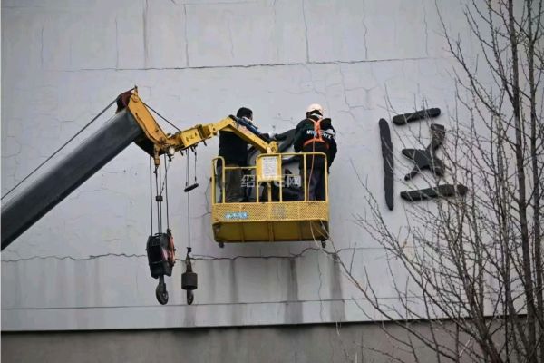 马年起势,苏宁广场晚上加班施工。