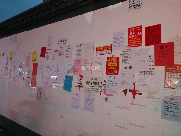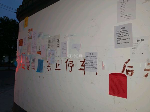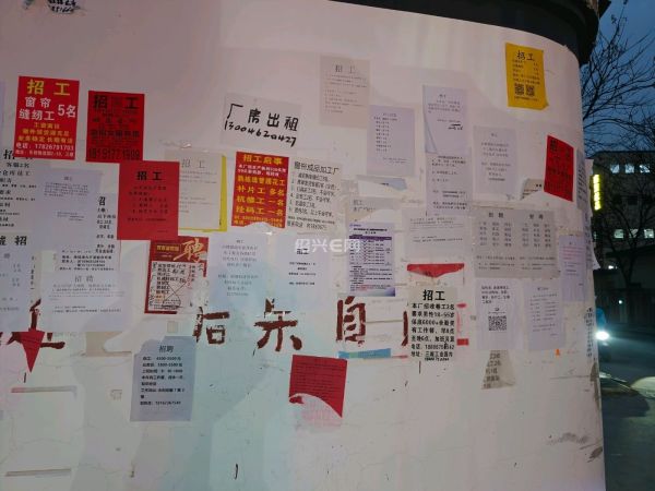 往前的一个转弯处,贴了满满一墙的招工启事,有很多人在一张张地挑选适合自己的工作,也是一道风景线吧。