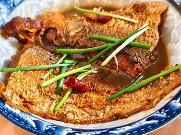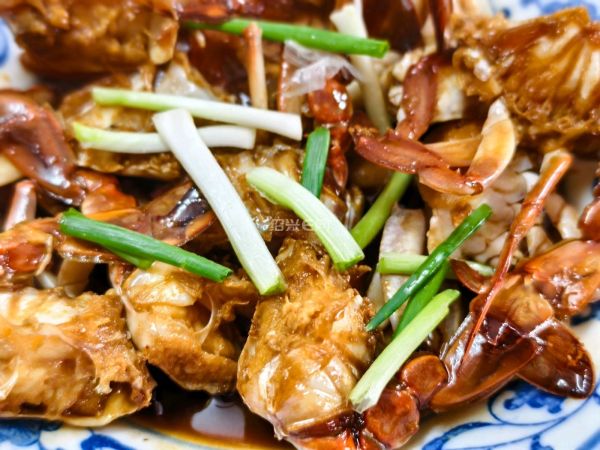火腿蒸腐竹,红烧蟹,红烧勒鱼,葱苗小炒,西兰花小炒,红烧萝卜