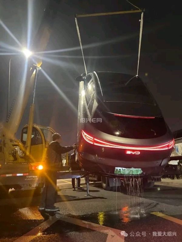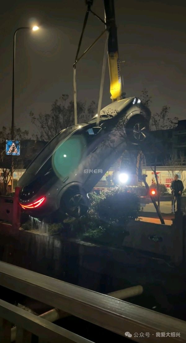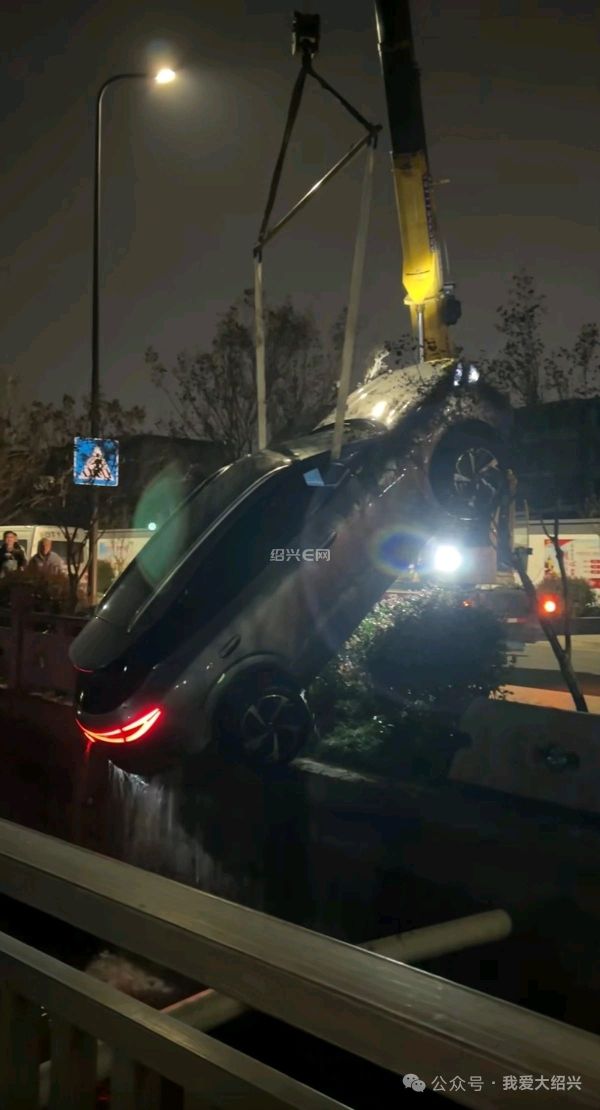 据网友爆料:3月6日晚上,绍兴建功中学附近的柳桥下家园南区门口,有一辆比亚迪新能源车掉入小区门口的河里。