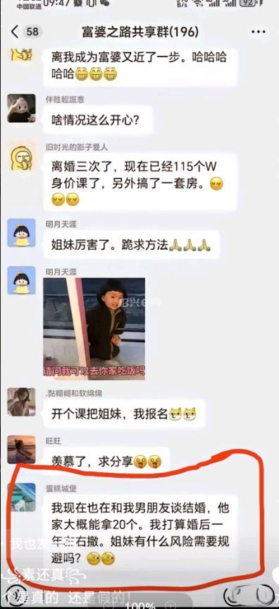 我跟我部门一个四十刚出头的女同事聊到结婚的话题,我把某音上一个叫“涂龙”的博主说的话转述给她,“彩礼不是保障,彩礼就是跑路费,给得越多,跑得越快。”