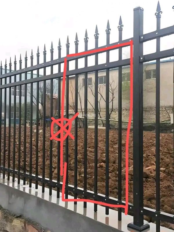 现在是下图所示的样子,在小区围墙的围栏上开了一个铁门,门的颜色跟原来的很接近,外面有一人多高的小树遮掩住,不仔细看真发现不了。