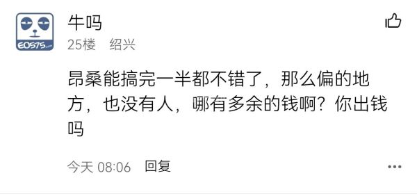 回 第12楼(alimama)的帖子 alimama:越城区想来看不起柯桥区的,划过去,又不当亲儿子对待,就充当阔地盘的门面而已,宁可弄了个鬼城镜湖,可见目光之短浅。 (2026-03-11 16:37)
