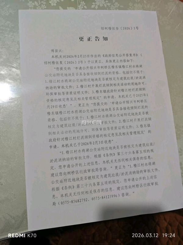近日,绍兴市柯桥区稽东镇人民政府发布的一份《更正告知》,在网络与民间舆论圈中引发了广泛的点赞与热议。面对此前政府信息公开答复书中存在的几处笔误,镇政府并未回避,而是第一时间启动纠错程序,以严谨的态度、坦诚的胸怀直面问题。这一举动,不仅修正了文字上的瑕疵,更在无形中为政府公信力增添了厚重的一笔,让民众看到了一个敢担当、讲诚信、为民服务的政府形象。