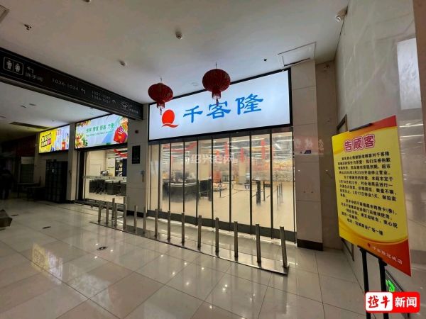 今天(3月13日)中午,记者来到该千客隆超市,只见超市入口处显眼地摆放着即将停止营业的公告。