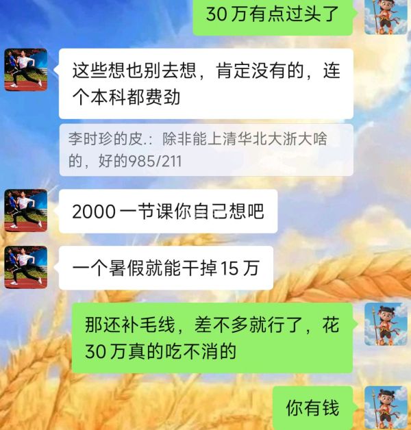 是啊,我也这么觉得,花30w/年补课,有点过头了
