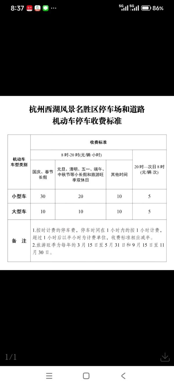 西湖景区停车调价公告