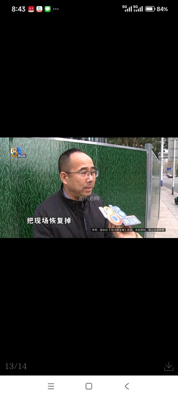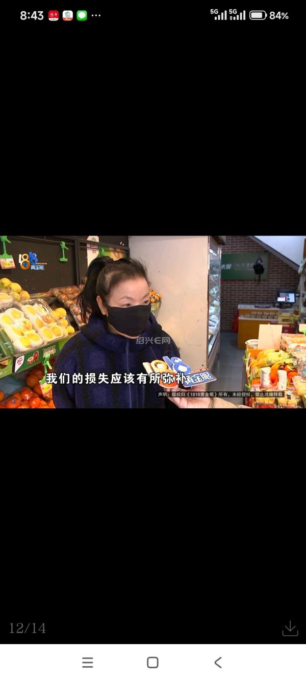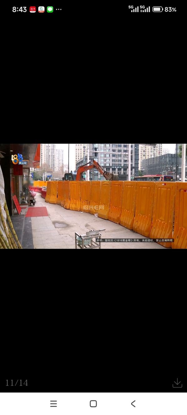 尹女士:政府的工程我们是配合的,但是不能给我们商户造成损失,门口要给我们留一条通道,让顾客可以通行。另外一方面我们的损失应该有所弥补。