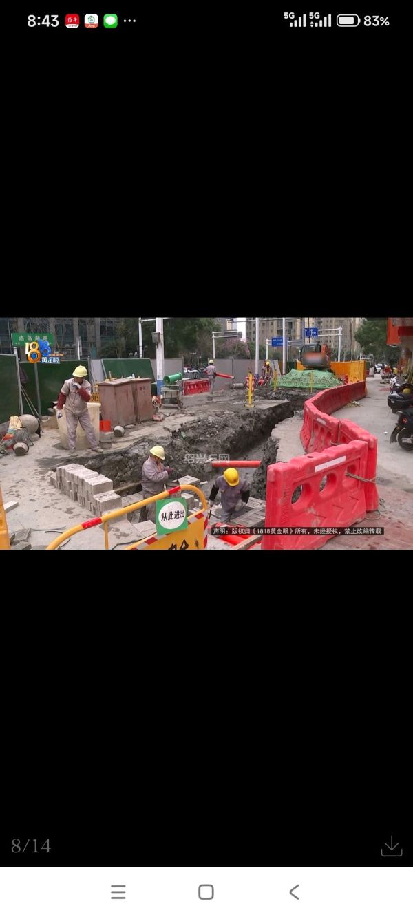 绍兴市轨道交通集团工程管理部土建科 牟科长:从2月份跟“汇金”的物业和房产公司沟通以后,开始组织进场施工,原计划一个月左右做完,考虑到现场的难度,春节之前我们还剩余一部分燃气和电力的管道,没有完全做完。我们把现场进行回填恢复,春节过后,陆续组织开始施工,预计再有15天左右,把这个回填完事以后,把现场恢复掉。