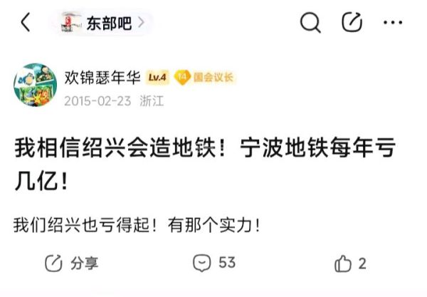 回 第3楼(tel388812)的帖子 tel388812:当时我就说绍兴没必要造地铁,不如高架快速路实用,现在看来我真的很有远见,你看现在有了高架快速路开车多方便,反观地铁,流量明显不达标 (2026-03-19 22:15)