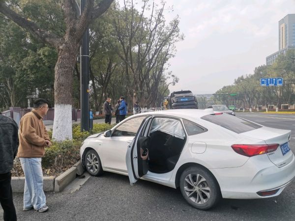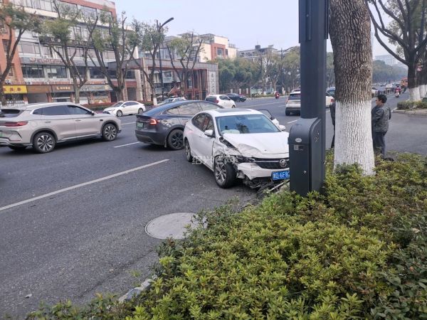 早上阳明路上两车相撞。开车真的不要太快,早晚会出事!