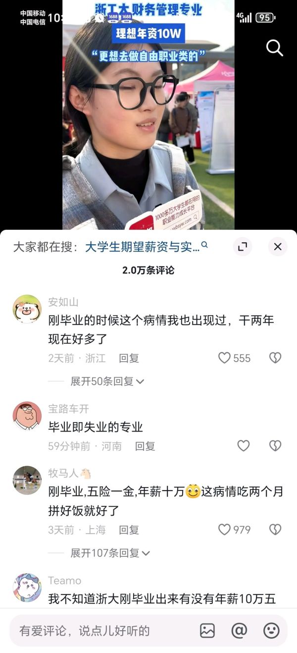 毕业生找工作也就这样,其中一个男生一个女生薪资要求较高,特意打开了评论区