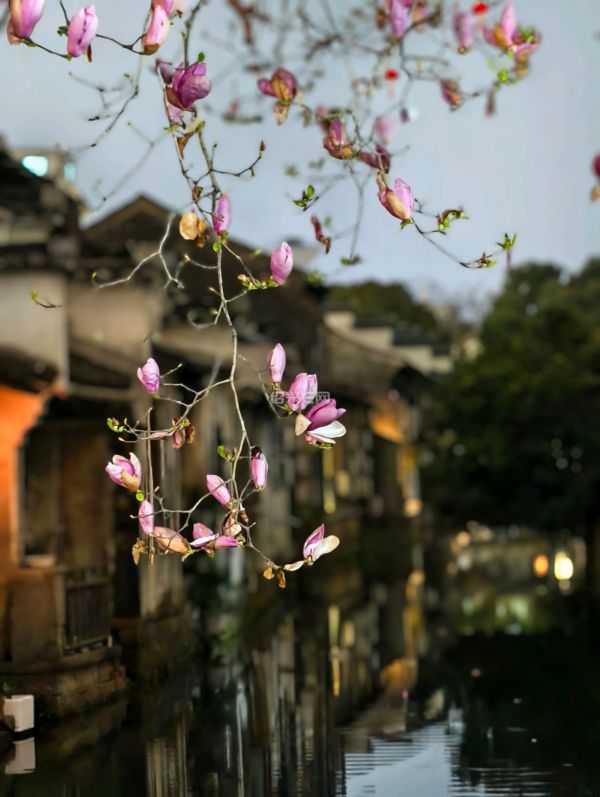 酒务桥边的网红玉兰花最近网上很火,天天有人去打卡。