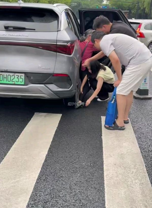 城东渡东桥附近一辆电车下来老人的脚被汽车轮胎压住无法动弹了
