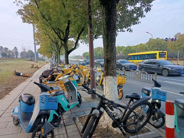 每天早上,柯桥区职教中心总有不少孩子骑公共电瓶车上学,个人估计学校为了整洁或某种管理需要,拒绝孩子们把公共电瓶车骑入学校周边的区域,所以孩子们只能尽量就近停在华舍大桥北坡下来的人行道及非机动车道上,造成狭窄拥堵,大家可以去现场看!其它车辆下坡冲下来时很危险!个人观察学校周边有的是停放这些电瓶车的地方,而孩子们也到了法定年龄骑车上学,无法禁止。这么做,学校周边看上去是整洁了,但关键是推出去的是危险因素,社会承受不起,非常不妥。